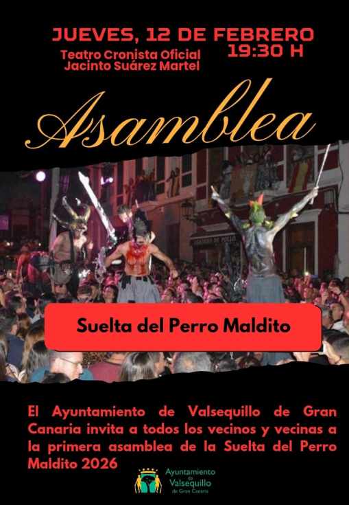 Bajo el lema “¿Y si empezamos a hablar desde ya de la próxima Suelta del Perro Maldito?”, la iniciativa llama a la participación vecinal en una asamblea abierta que se celebrará el próximo jueves 12 de febrero, a las 19.30 horas, en el Teatro Cronista Oficial Jacinto Suárez Martel.