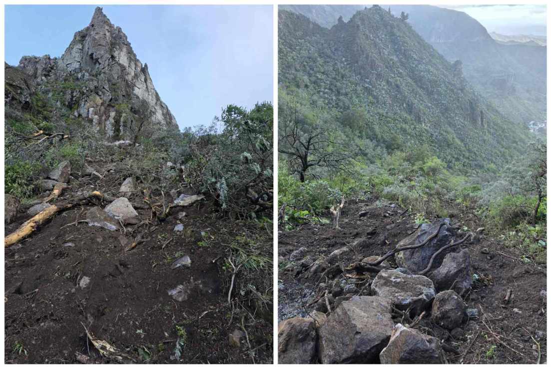 Un desprendimiento hace desaparecer una parte del camino en la cumbre de Tenteniguada
