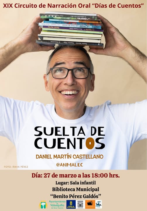 La actividad, titulada Suelta de Cuentos, estará a cargo del narrador Daniel Martín Castellano (Animalec), quien ofrecerá una sesión cargada de historias, emoción y creatividad en la sala infantil del centro.