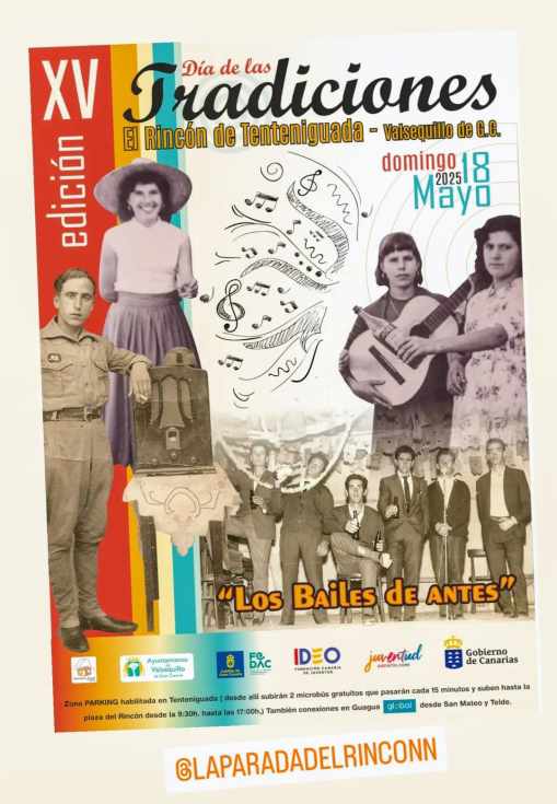 El Rincón de Tenteniguada, en el municipio de Valsequillo, se prepara para vivir una nueva edición de su tradicional "Día de las Tradiciones", que este año cumple su XV edición y se celebrará el próximo domingo 18 de mayo, bajo el lema "Los Bailes de Antes".