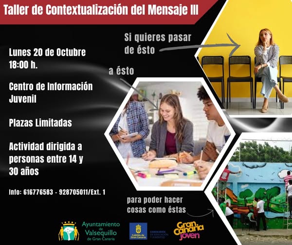 ¡Tu momento de brillar es ahora! Bajo este lema, el Ayuntamiento de Valsequillo, a través del área de Juventud, ha organizado el Taller de Contextualización del Mensaje III, una actividad que busca empoderar a los jóvenes del municipio, fomentar sus habilidades comunicativas y convertirlos en protagonistas activos dentro de su entorno social.