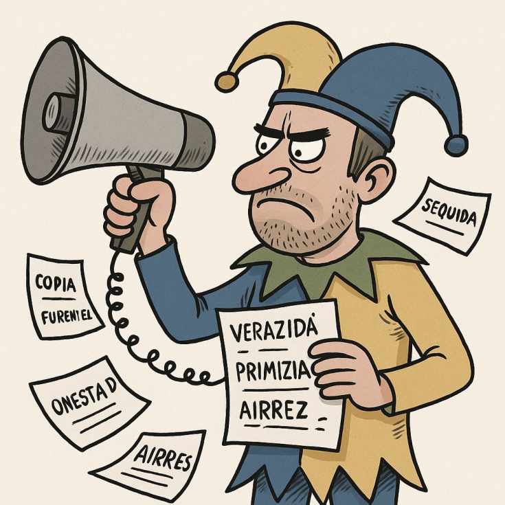 En Valsequillo no hay semana sin función. El mismo personaje que no sabe poner una tilde, ahora se nos presenta como analista de medios, politólogo de mercadillo y salvador del periodismo local. El bufón sosete ha descubierto que existen las “primicias” y que copiar noticias tiene su ciencia. Milagro de las redes: quien nunca aprendió a escribir, ahora dicta cátedra sobre el oficio.