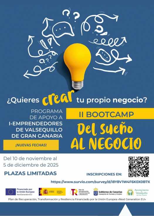 El Ayuntamiento de Valsequillo de Gran Canaria, a través del Plan de Sostenibilidad Turística en Destino “Naturaleza en flor”, ha abierto el plazo de inscripción para la segunda edición del programa de apoyo a i-emprendedores, el II Valsequillo Bootcamp “Del sueño al negocio”, que se celebrará próximamente con un formato intensivo y totalmente práctico.