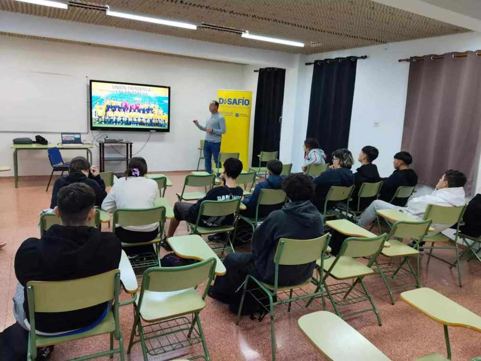 La Fundación Canaria UD Las Palmas llevó a cabo enn el IES Valsequillo una nueva sesión formativa del proyecto DISAFIO, una iniciativa que combina deporte, educación y acción social. En esta ocasión, la charla estuvo dirigida a un total de 60 alumnos del centro.