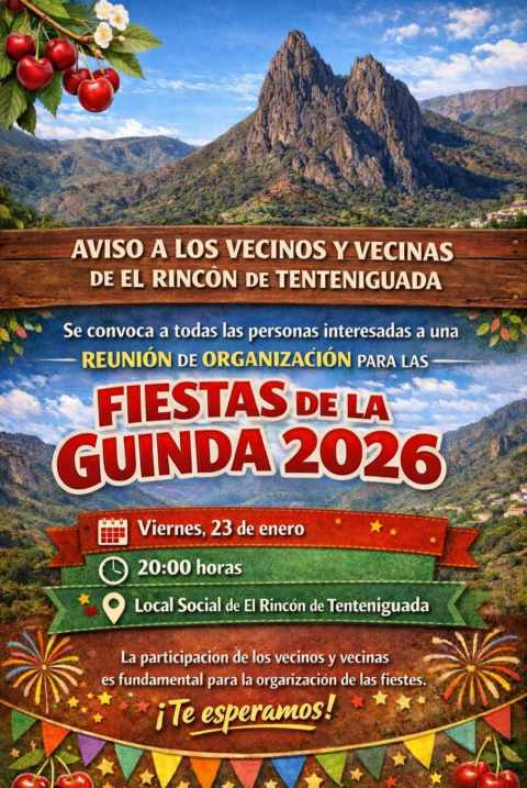 El Rincón de Tenteniguada comienza a dar los primeros pasos para la organización de las Fiestas de La Guinda 2026, una de sus celebraciones más emblemáticas, que cada año reúne a residentes y visitantes en torno a las tradiciones del barrio.