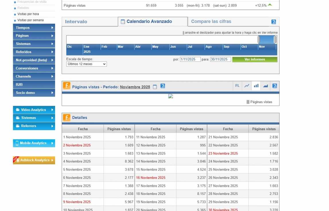 El cómputo global del mes fija 91.659 páginas vistas, con una media diaria de 3.055 lecturas
